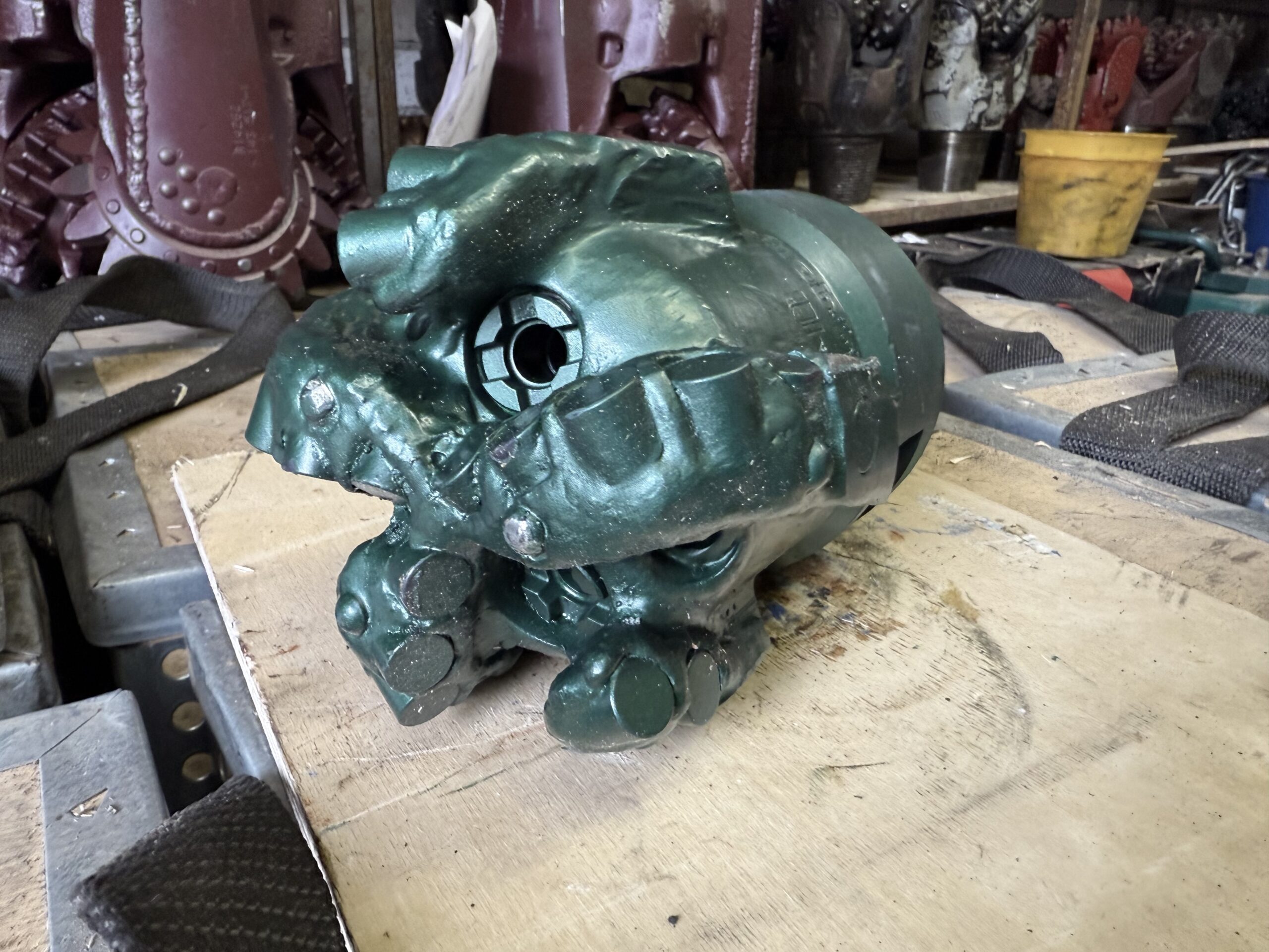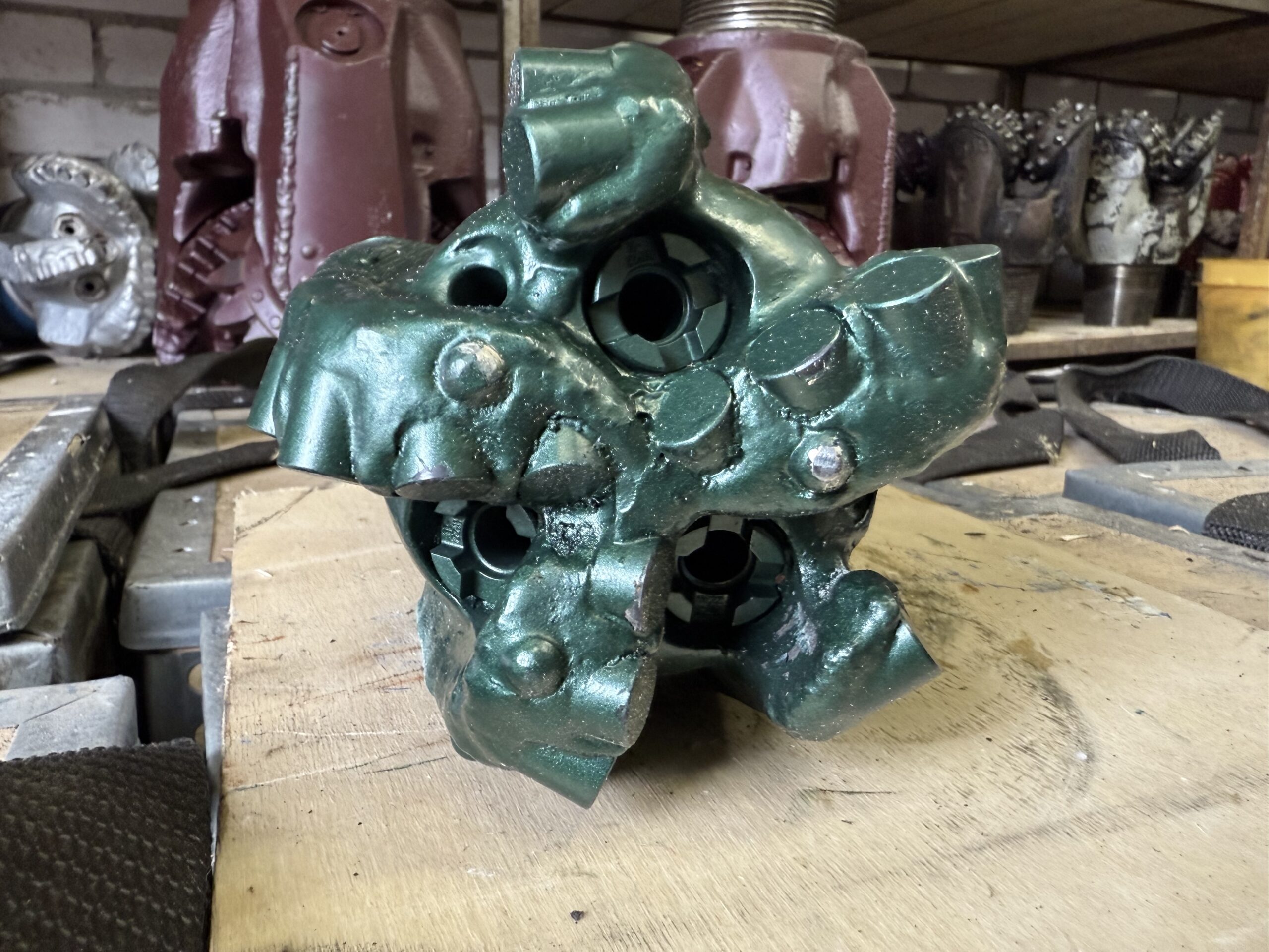 Произвести осмотр и проверку долота. Аккуратно вынуть долото из ящика. ВНИМАНИЕ: НЕ СТАВИТЬ И НЕ КЛАСТЬ ДОЛОТО НА МЕТАЛЛИЧЕСКИЕ ПОВЕРХНОСТИ, ЧТОБЫ НЕ ПОВРЕДИТЬ РЕЗЦЫ! Использовать резиновые маты или деревянную поверхность. Визуально проверить долото на целостность резцов, чистоту и состояние резьбы. Убедиться в чистоте внутренней полости долота и промывочных каналов. Замерить наружный диаметр долота соостветствующим шаблоном для замера диаметра PDC долот. Проверить диаметр промывочных каналов, в случае необходимости произвести замену насадок: