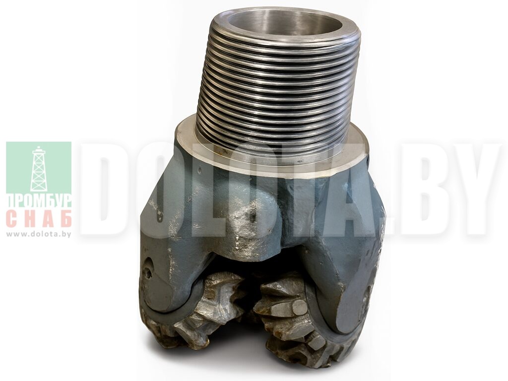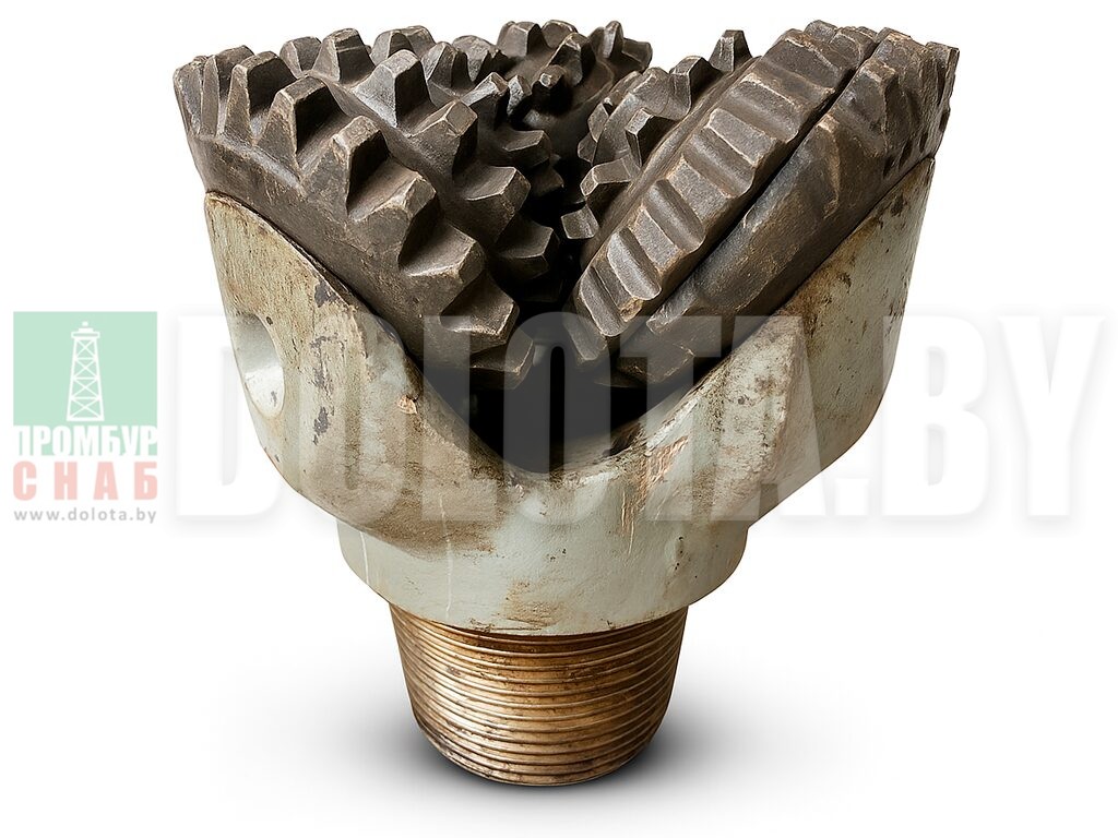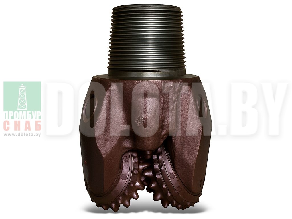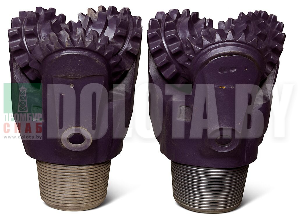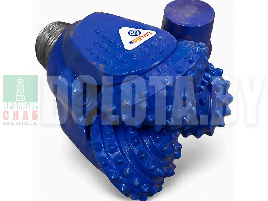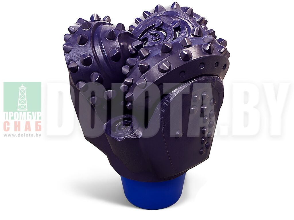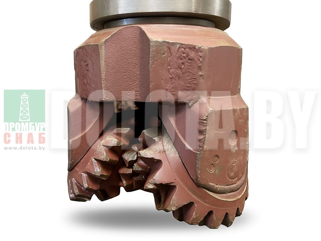 Долото оснащено твердосплавными зубками на обратном конусе шарошек, которые выполняют функцию калибровки скважины и предотвращают преждевременный износ корпуса. Дополнительную защиту обеспечивают козырек и ребро набегающей грани спинки лапы, армированные твердосплавными зубками и наплавленные твердым сплавом.